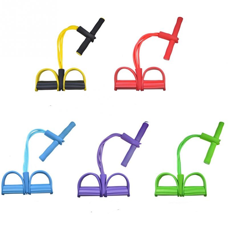 Waist Exercise: Sit with feet flat on the floor, hold the handle, and perform sit-ups with the resistance tube to engage core muscles and burn calories.